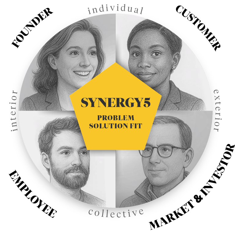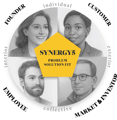 For founders, employees, executives, investors, and ecosystem builders alike: Learn how to align what truly matters – founders, employees, customers, markets & investors and the problem/solution fit– with the SYNERGY5 Model and WIN5 Actions. No buzzwords. No theory slides.